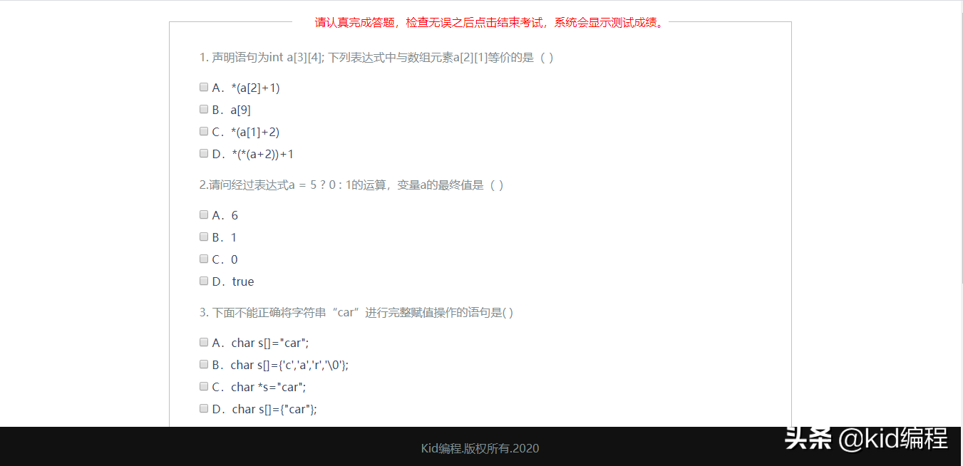 在线考试作答页面运行实际效果如下图: