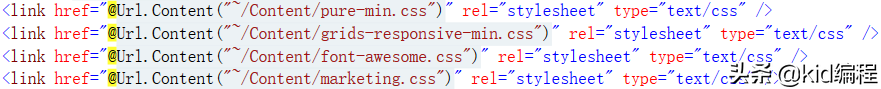 本例设计使用雅虎公司提供的轻量级前端响应式页面设计、布局框架进行进行页面开发。使用方法较为简单,只需要在MVC模式下的模板页面中引入对应CSS样式文件即可。引入方式描述如下图: