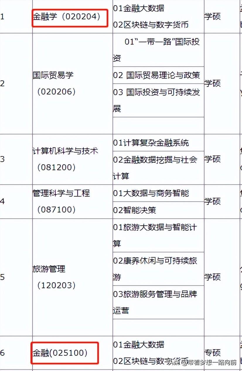 该专业包含两个培养方向:01 跨境金融方向;02 金融分析方向。