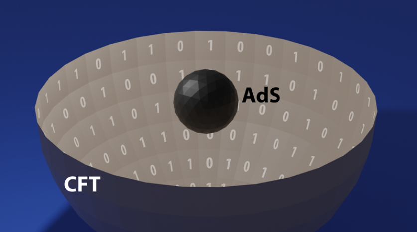 黑洞热力学的研究者们主要采用的是一种Ads/CFT对偶,其中Ads(反德西特空间)是“体”,CFT(共形场理论)是“边界”。通过对偶关系,将“体”中的黑洞连同黑洞之外的全部空间,都对偶到“边界”上进行研究。通过这样一番转换,Ads空间中难以处理的量子引力问题,就在CFT中变成了相对容易处理的纯场论问题,可以使用的数学武器立刻丰富了很多。这种操作就像在量子黑洞上蒙了一层魔术毯,许多棘手的问题都被魔术般变走了。