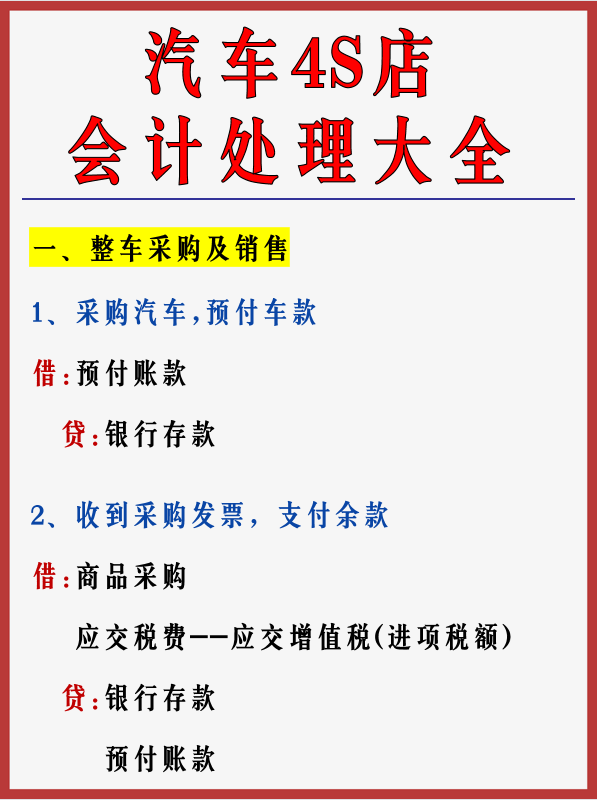 会计没经验不会实操的时候真的太难找工作了,毕业那年我找会计工作找了半个月,都没找到合适的,后来就想着先退而求其次,进了一家小公司里做出纳,一直平平无奇,工资也就三千多点!现在终于转到了汽车4S店当会计,刚开始工作的时候确实有很多不懂的地方,幸好带我的老会计给我这份汽车4S店会计分录大全,帮我快速上手。