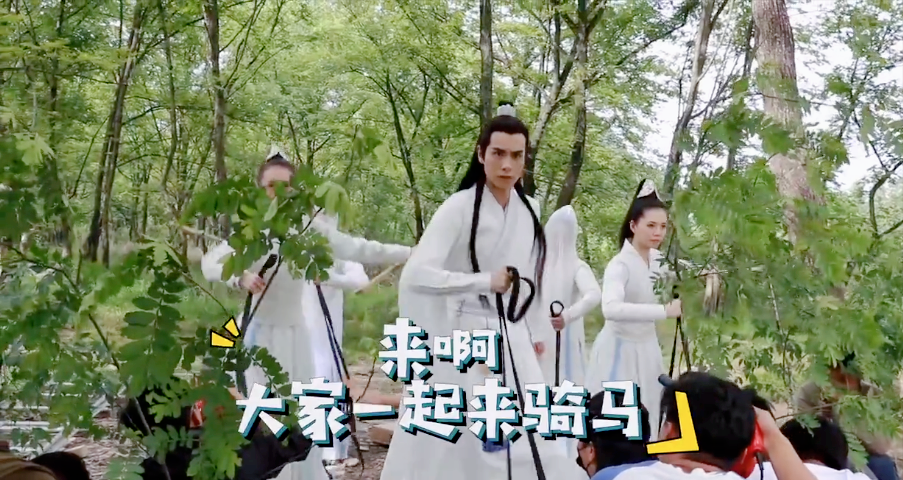 王子文骑的是凳子,王一博、张睿拍马戏是工作人员用梯子扛着走。