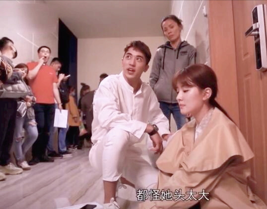 戏份是他要抱着程潇来回跑几次,结果进来了还好,等出去的时候直接没抱住,差点把程潇摔地上。