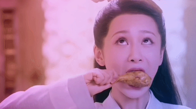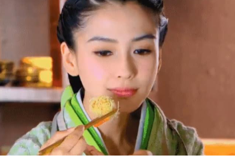 《云中歌》里面吃点心,和颖宝差不多,吃了一口空气,然后装着很好吃,咀嚼几下,嘴里还赞不绝口。