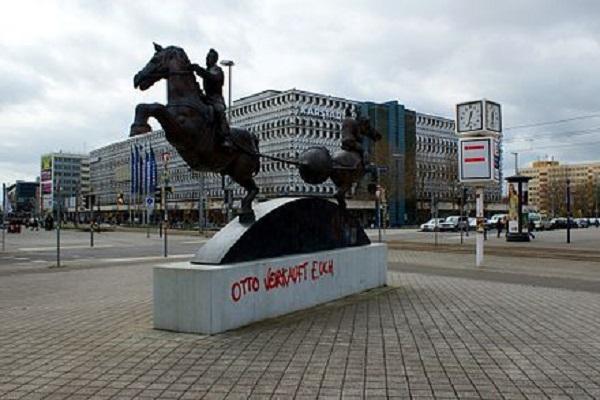 一声令下,16匹马开始朝两个方向发力。僵持了一会,只听见一声巨响,两个半球总算是分开了,而马匹已经累倒在了地上。