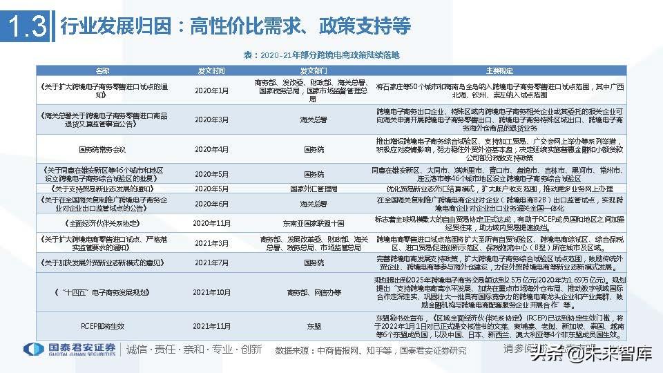 马太效应将逐渐显现。随着竞争加剧和资本投入,行业集中度望进一步提升。跨境电商龙头企业将通过规模效应以降低成本,通过强化供应 链与品牌力等因素提升竞争壁垒,从而占据更多的市场份额,我们看好未来在各细分领域涌现出类似SHEIN的龙头企业。