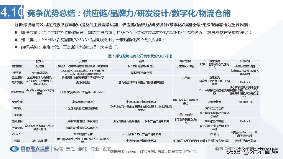 优质供应商体系:搭建多层次、动态的供应商管理体系加剧供应商竞争水平,提高供应商质量。其次,基于全链路数字化能力,打造供 应商共生共荣的良性生态。公司通过机器学习算法,对物流时效、供应商交期等数据进行供需模拟计算,以指导公司采购和供应商备货。 该系统增强了供应商与公司间粘性,进而实现公司和供应商间的双赢,有利于公司持续稳定成长。