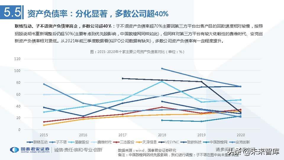 互动、子不语资产负债率高企,多数公司超40%:子不语资产负债率超70%主要因第三方平台出售产品的回款速度相对较慢,按照 招股说明书重新调整后仍超50%(主要考虑到优先股影响,中国敦煌网同样如此),但同样对第三方平台有较大依赖性的赛维时代、安克创 新资产负债率相对更低。从2021年前三季度数据看(拟IPO公司数据有缺失),多数公司资产负债率有一定程度提升。