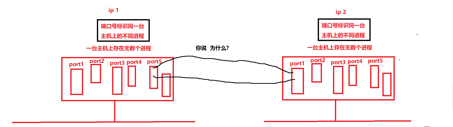 首先我们确定要双方不同主机上的不同进程间进行通信, 必须确定双方的 ip + port why?