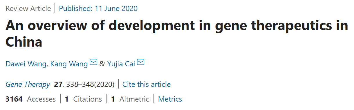 近日,我国基因治疗领域专家、上海交通大学蔡宇伽教授在 Gene Therapy 杂志发表了题为:An overview of development in gene therapeutics in China 的综述论文,对我国基因疗法的发展做了详细概述。