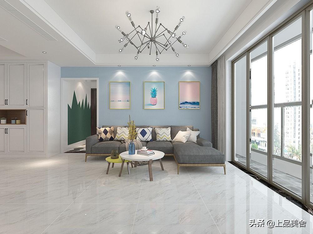 采用浅蓝色墙漆,为整个空间增添了一股清新活力的色彩,配上独特的北欧风家具,整体清爽,干净,有活力;电视墙的宽度不够,所以显得不够大气,不过在北欧风格中,这样也还是算比较合适了,北欧风要的不是大气,而是清新自然的搭配,简单有层次。