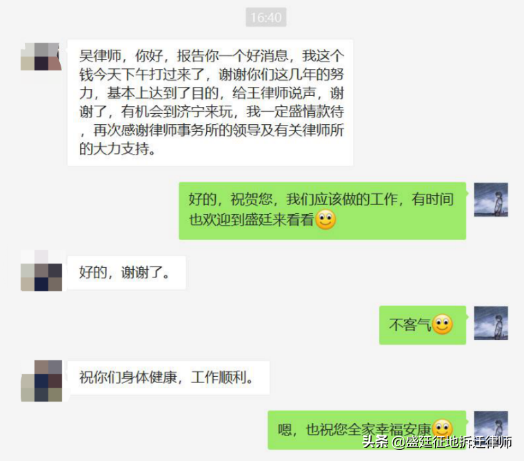 “吴律师,告诉你个好消息,我这个钱今天下午打过来了!”这是谭先生和盛廷律师微信聊天上的一句话,字里行间无不透露着他此刻的欣喜。