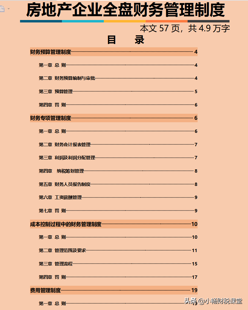 前段时间,总监为了完善公司的拓展业务,特意花了15天时间,编制了一整套房地产行业的财务制度,包括各项财务详细制度流程,全文将近5万字,可以说非常用心了,老板开会的时候还亲自表扬了一下他的能力,真心让人佩服!
