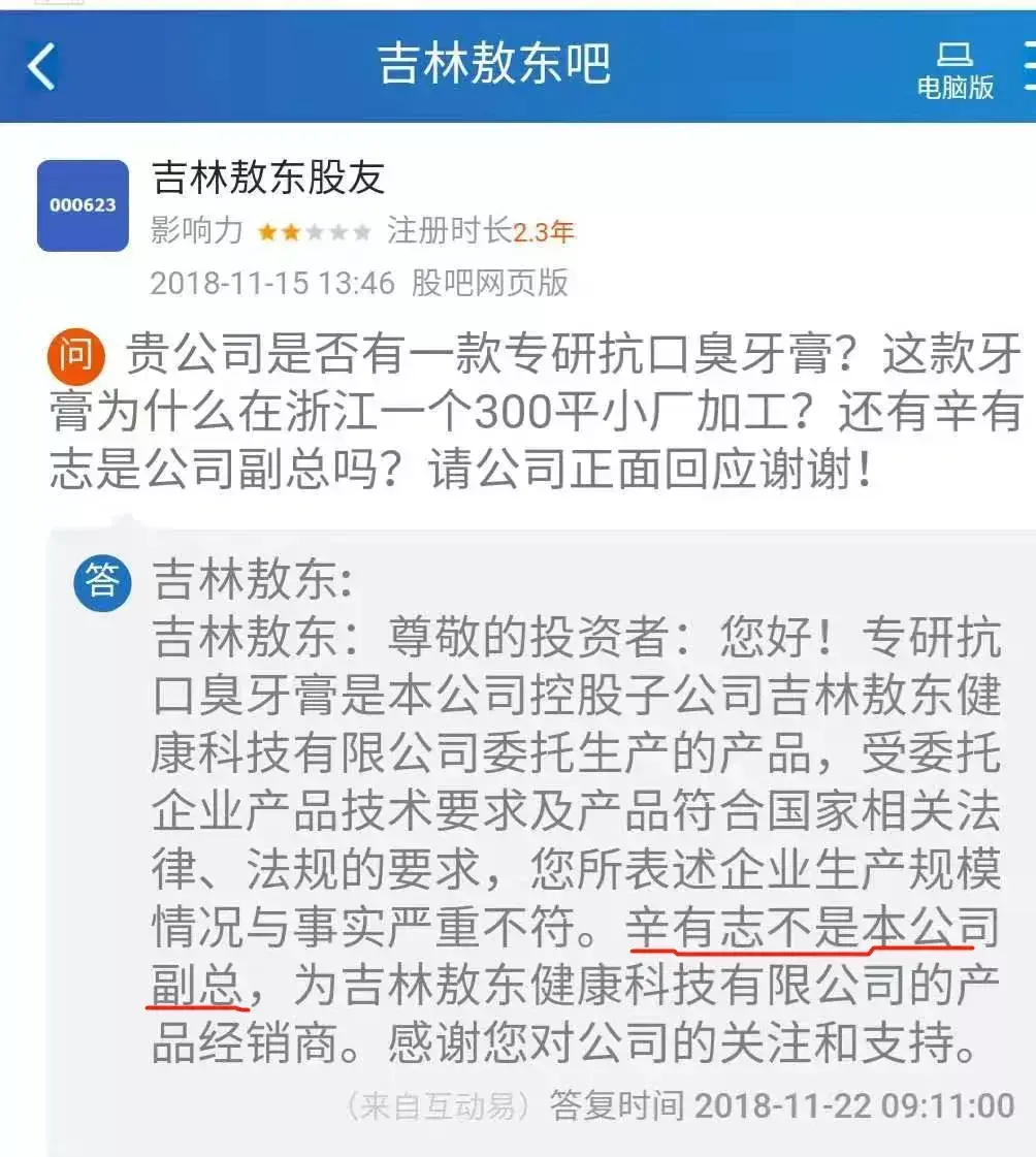 吉林敖东官方也出来说,辛有志根本不是什么副总,仅仅是旗下分公司的经销商。