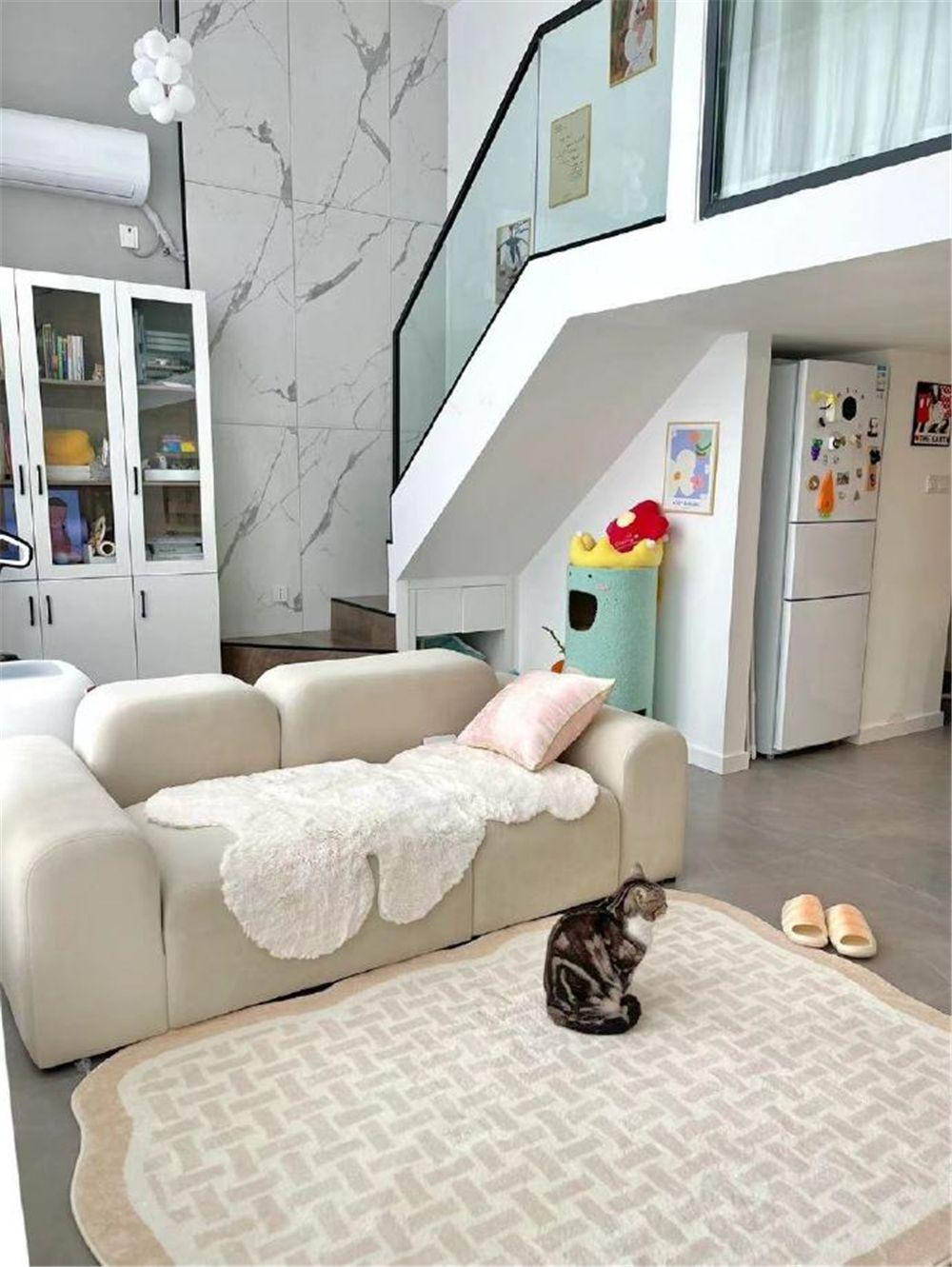 由于LOFT层高原本就高,客厅又是直接和二层进行打通,所以这种开扬感真的太优秀了,完全没有一间38㎡小户型的逼仄和拥挤感。