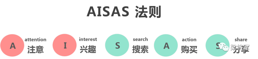 AISAS理论的前两个阶段和AIDMA法则相同,但迭代了后三个阶段: