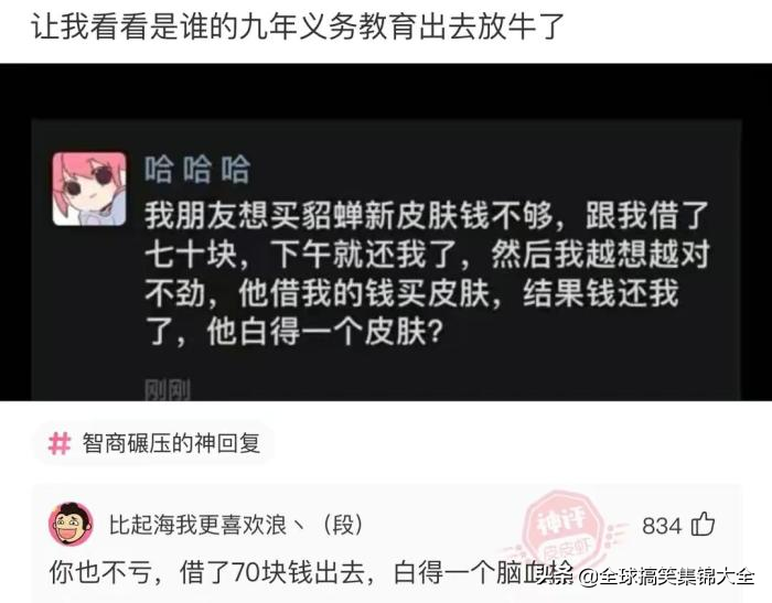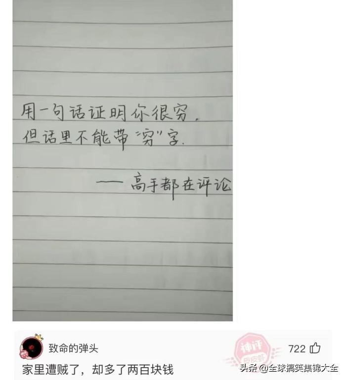 版权声明:我们致力于保护作者版权,注重分享,被刊用文章【一句话证明你穷(神回复)】因无法核实真实出处,未能及时与作者取得联系,或有版权异议的,请联系管理员,我们会立即处理! 部分文章是来自自研大数据AI进行生成,内容摘自(百度百科,百度知道,头条百科,中国民法典,刑法,牛津词典,新华词典,汉语词典,国家院校,科普平台)等数据,内容仅供学习参考,不准确地方联系删除处理!;