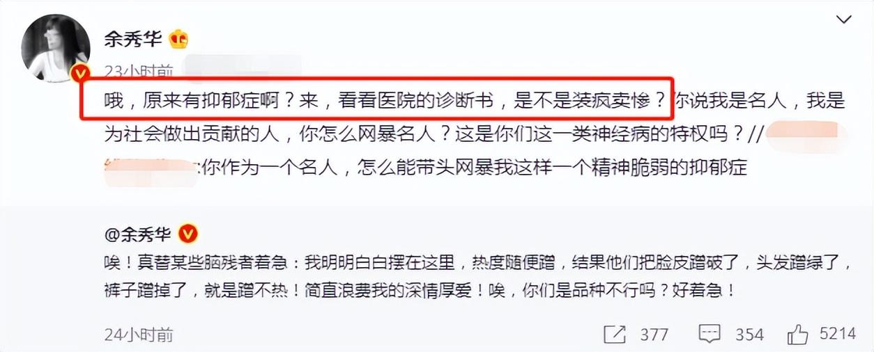 但是余秀华却喋喋不休,她仍然在自己的社交平台辱骂着这位粉丝,并要求他拿出自己抑郁症的诊断书,来证明自己的身份,说起话来格外难听。