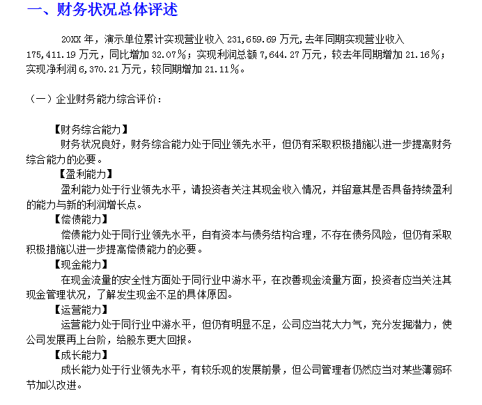 版权声明:我们致力于保护作者版权,注重分享,被刊用文章【企业财务会计报告(2021企业年度财务分析报告范文)】因无法核实真实出处,未能及时与作者取得联系,或有版权异议的,请联系管理员,我们会立即处理! 部分文章是来自自研大数据AI进行生成,内容摘自(百度百科,百度知道,头条百科,中国民法典,刑法,牛津词典,新华词典,汉语词典,国家院校,科普平台)等数据,内容仅供学习参考,不准确地方联系删除处理!;