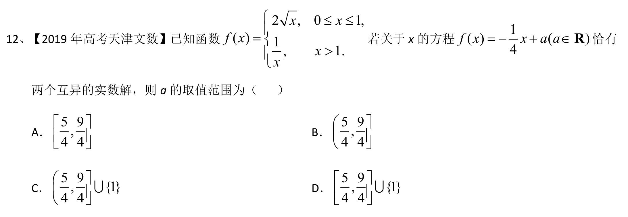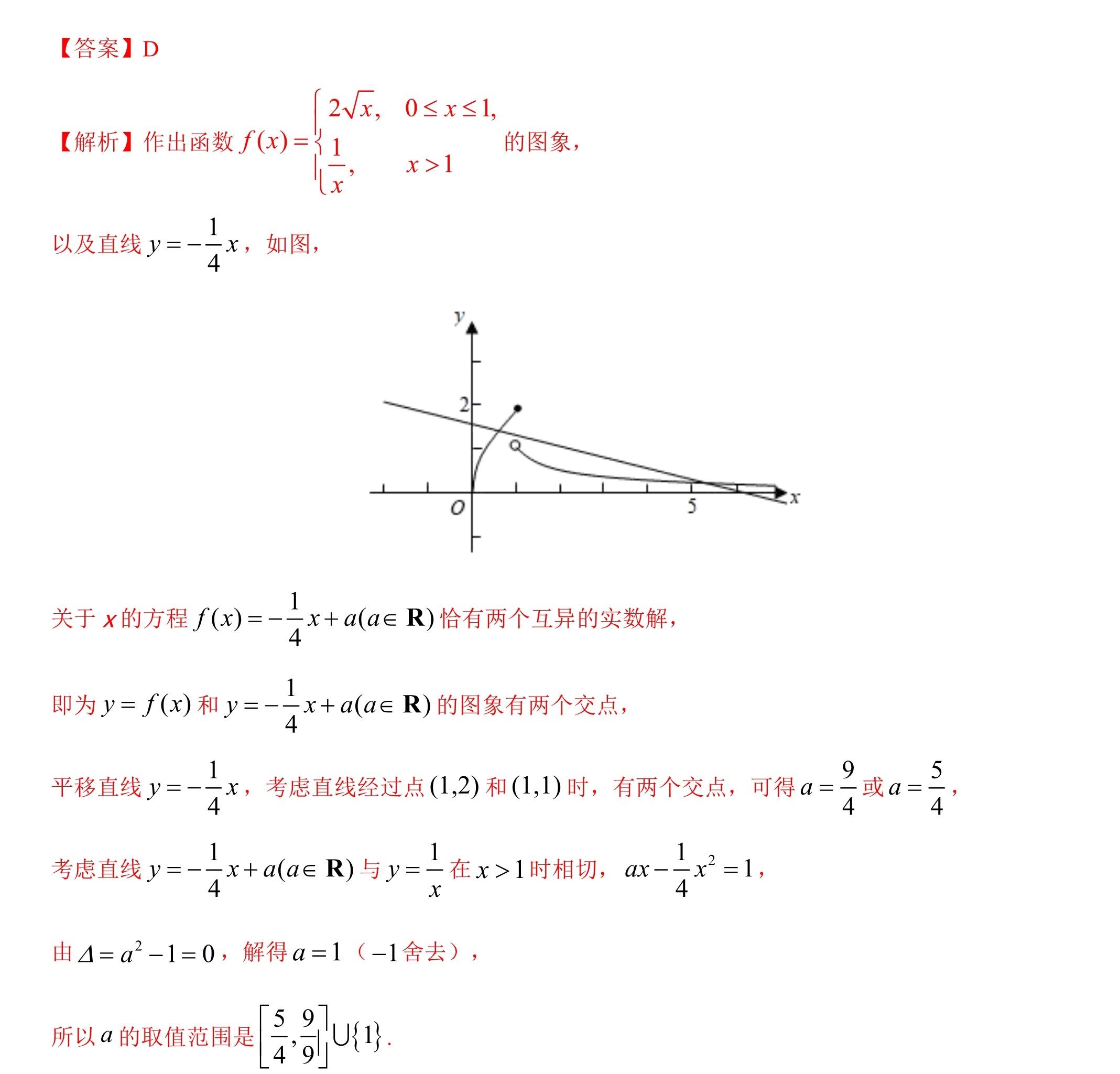 通过图像研究函数中的参数范围问题,是体现数形结合思想的主要体现,也是运用数形结合解决含参问题的主要方法,因此对于这类问题要把参数独立出来,然后运用函数的图像解决。为了方便起见,转化后的两个函数,其中一个是不含参数的函数,另一个是含有参数的函数,即转化为“一静一动”两个函数,这样,通过研究“动”函数的图像与“静”函数的图像的相对位置关系就可以得到问题。