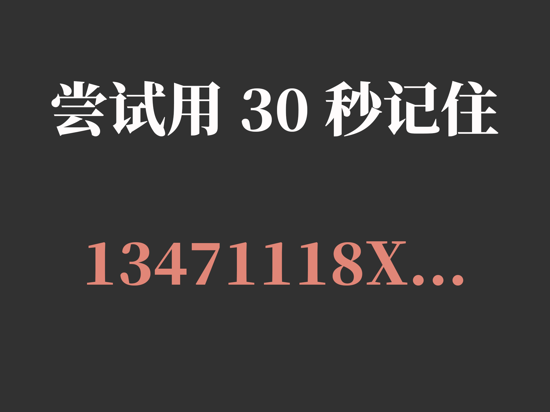 这里给大家出一道题目:13471118X…… 大家测试一下,能否用30秒记住这8个数字?