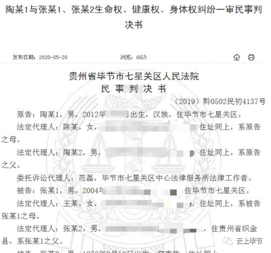 记者注意到,该判决书于2020年5月20日在中国裁判文书上公开,由贵州省毕节市七星关区人民法院一审开庭审理。