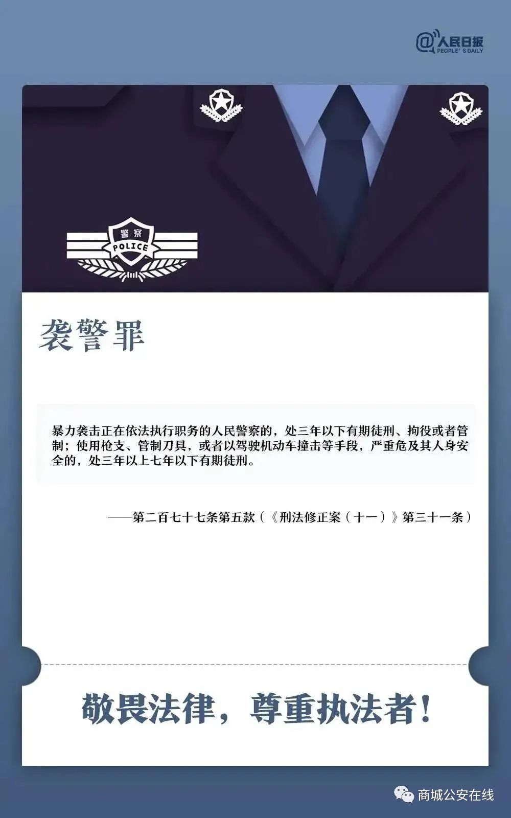人民警察代表国家行使执法权,肩负着维护社会公共秩序、保护人民群众生命财产安全、维护社会公平正义等重要职责。“袭警罪”入刑,将更好地维护民警执法秩序、保护执法执勤民警人身安全,从法律层面进一步为维护民警执法权威构筑坚固防线。警方呼吁广大市民严格遵守法律法规,积极配合民警执法,维护法律权威和法治尊严。
