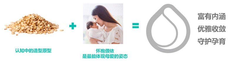 我们设计的推导是这样的:认知中的造型原型像一颗水滴的芝麻,加入母婴的属性:母子偎依,是最能体现母爱的姿态。就等于我们的芝麻超级符号。它是富有内涵、优雅收敛、守护孕育的!
