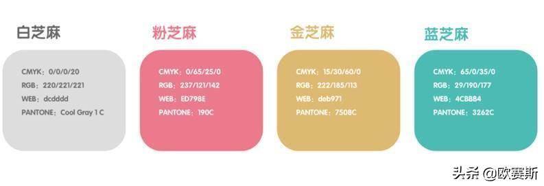 我们的色彩规范是白芝麻、粉芝麻、金芝麻、蓝芝麻,都有它独有的色彩符号。