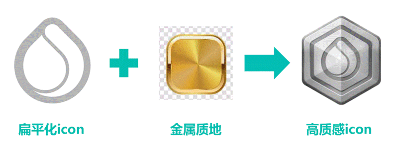Icon设计演变是由扁平的芝麻Icon加上金属质地,成为我们高级感的Icon。它是六边形造型,艰巨稳定和美观。