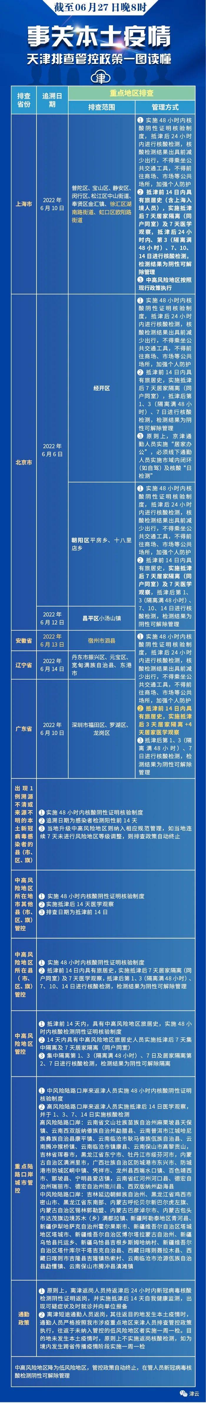 去过外地这些地方要注意!天津更新排查管控范围(截至6.27晚8时)