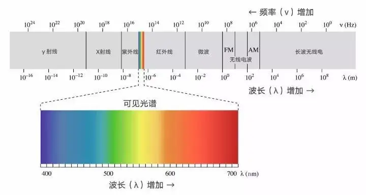 不同的颜色,其实是波长不同,其中越靠近红色这端,波长就越长;越靠近紫色波段,波长就越短。