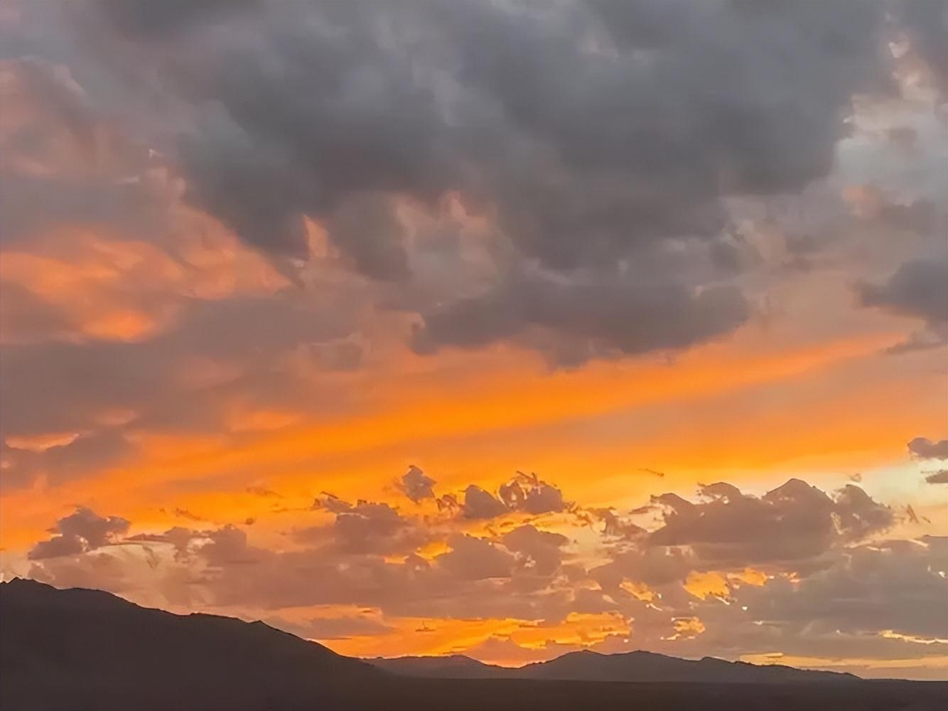能够引发红色天空的还有一种可能“火烧云”,火烧云的形成也和大气中的水汽,以及太阳角度有关,在日出或者日落时,斜射的太阳光通过大气层的路程较长,波长较短光线还没到达这里,就被散射出去了,只留下波长较长的红橙色光线,就形成了“火烧云”。