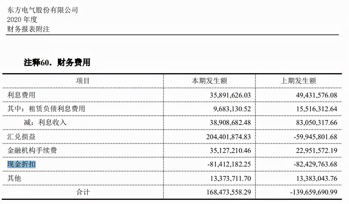 看上市公司东方电气2020年披露的年报,其现金折扣在财务费用体现了8000多万,是否满足新准则的要求呢?