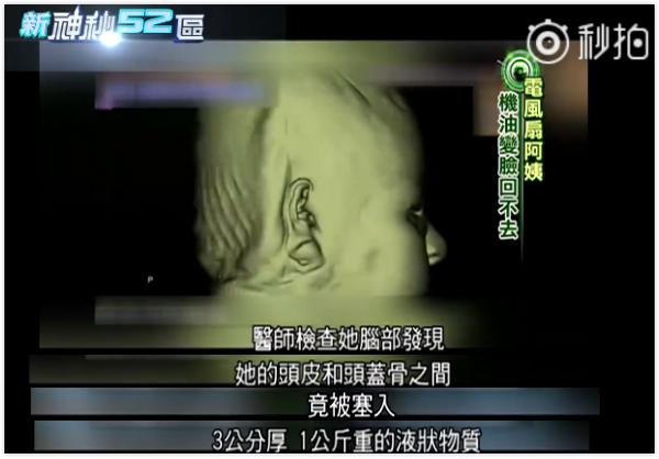 手术的过程中,医生看到韩慧景的情况都震惊不已,她头上填充的是机油,这些有害物质长期侵害着她的皮肤和面部神经,波及到了五官。