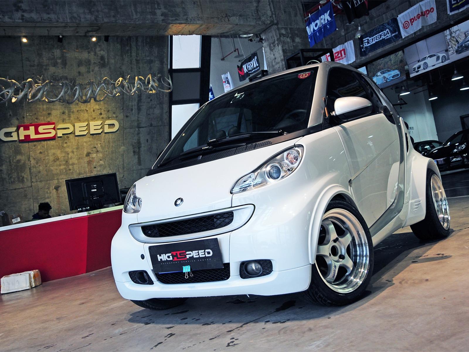 外观上,被誉为“奔驰时装设计师”的劳伦士Lorinser为这辆smart准备了一套非常霸气的宽体车身套件,包括:前唇、后唇、前轮眉、后轮眉,这些套件的应用也让smart充满设计感。