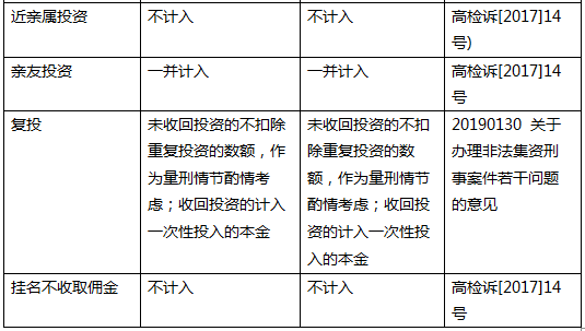2019年1月30日最高人民法院、最高人民检察院和公安部联合发布的《关于办理非法集资刑事案件若干问题的意见》对此规定如下(第5条):