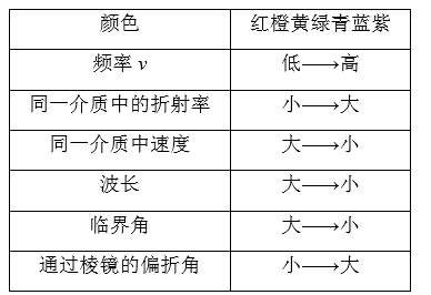 3.同一种介质中,频率越大的色光折射率越大,传播速度越小.