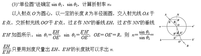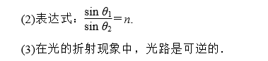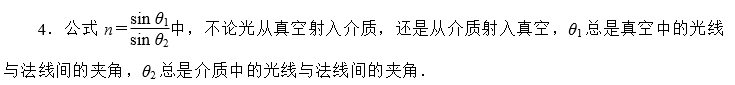 (4)当光从真空(或空气)射入某种介质时,入射角大于折射角;当光由介质射入真空(或空气)时,入射角小于折射角.