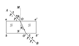②移去玻璃砖,连接P3、P4并延长交bb′于O′,连接OO′即为折射光线,入射角θ1=∠AOM,折射角θ2=∠O′ON.