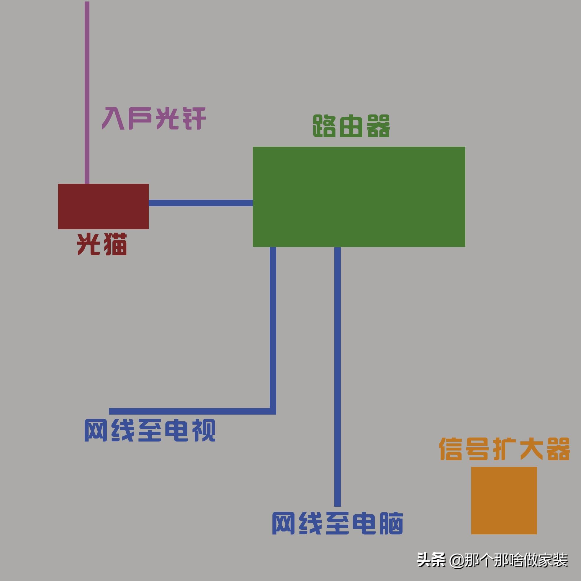 很简单,那就单在弱电箱里面对接光猫(光猫体积很小),然后一根网线延伸至书桌或者电视柜或者储物柜,走道顶等,在这个地方放置无线路由器,然后由此处再延伸网线至其需要的设备处即可(这个地方一定要预留强电插座)。