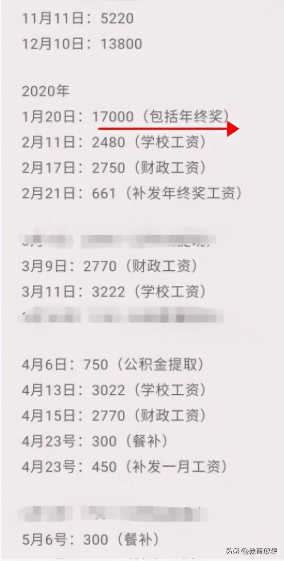 山东东营,就是那个传说中的石油城市,高中在编教师,入职四年非班主任。每月到手工资4363,公积金大概1300+。额外的收入有取暖费2000,精神文明奖一万二,13月工资5599,2019年还发了个考核奖1.8万,高考奖九千,不过这个高考奖得带高三才有,不带高三的时候大概就是凑个热闹分个一千来块。真是不高啊,每年加公积金也就刚刚过十万,这还是有高考奖的时候。那个考核奖好像也是2019年第一次试点发放,以后还不知道怎么样呢。给大家做个参考吧~(下图)