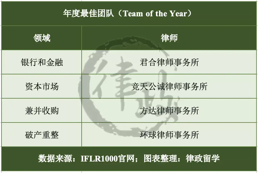 在“年度最佳律所”和“年度最佳团队”两个榜单中均上榜的有君合律师事务所和方达律师事务所。