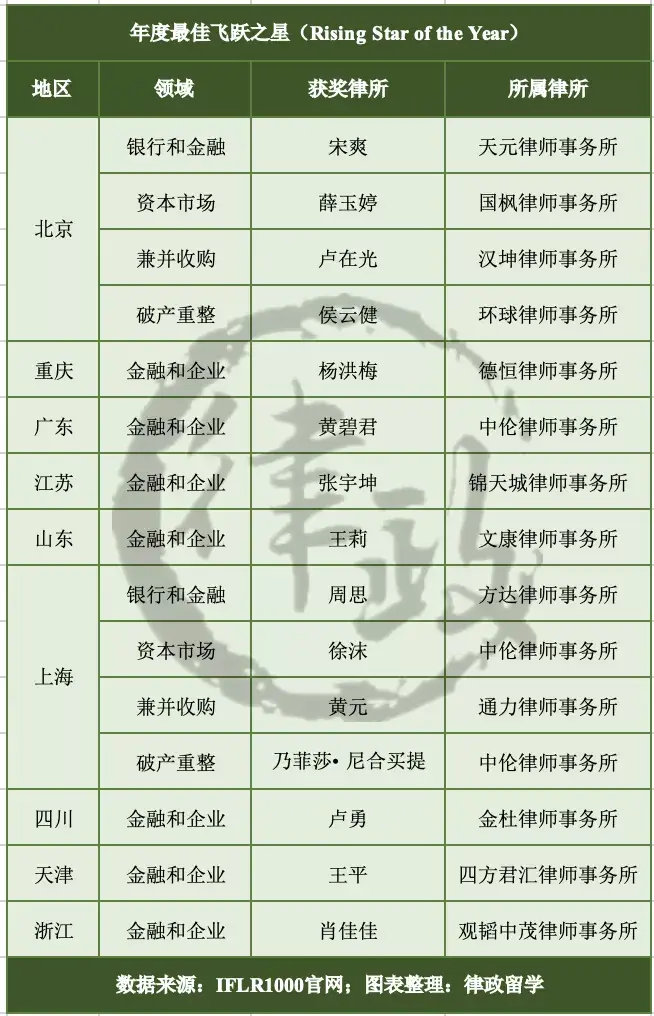 该榜单的候选人取得律师执业资格的年限不超过15年,且在本调研周期内尚未成为合伙人。在2020年度参与并完成了一些重要的案例,并在该案例中发挥了关键作用。