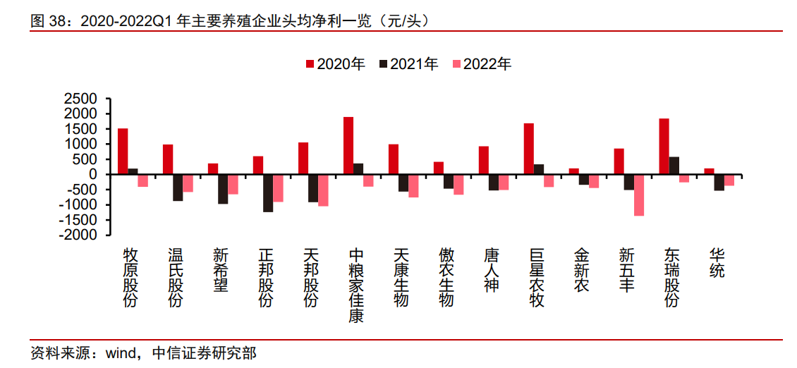 公司头均养殖成本处于行业较低水平。公司近 2 年头均盈利居上市公司前列,2020 年 公司头均利润超 1500 元,2021 年头均利润 300-400 元,2022Q1 亏损幅度亦低于行业。