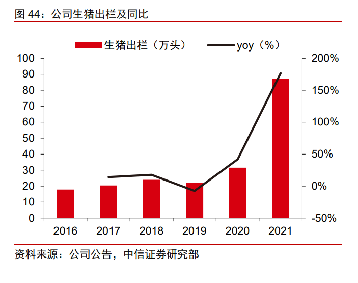 2020 年公司全年生猪出栏 31.5 万头,同比增长 41.96%;2021 年公司全年出栏生猪 87.1 万头,同比增长 176.51%。我们认为公司 2022-2023 年出栏有望快速增长,达 150/265 万头。
