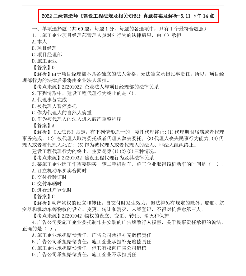 所以第一时间整理好二建《法规》答案及解析,快来看看你考了多少分,上午场的《施工管理》和1天3科考试地区的全部科目完整版答案也整理好了,需要的朋友一并拿去,估分了!