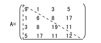 例5.5 图5-5是一个4阶对称的对称矩阵,虚线所示部分称为对称矩阵的下三角部分(包括对角线部分),显然对下三角部分数组元素ai,j,一定有i≥j。
