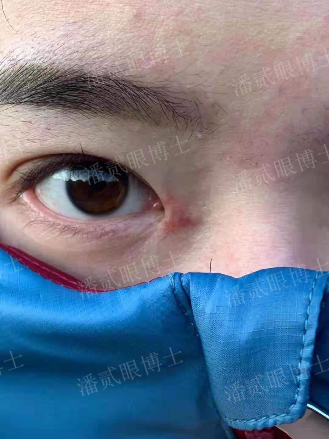 两侧外眼角修复+右侧内眼角修复——术后第二天
