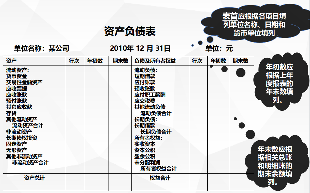 资产负债表格式和内容: